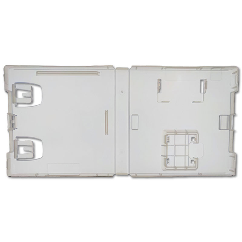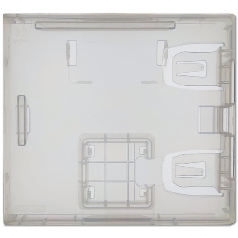The entire outside surface of the box is covered with a clear pocket for inserting artwork (open at the top and bottom).